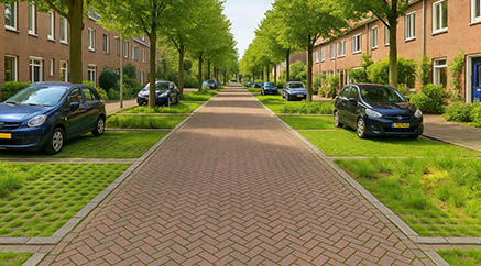 Groene parkeerplaatsen combineren parkeren met waterbeheer en groen. In plaats van een gesloten verharding worden liggen er waterdoorlatende stenen, grasbetontegels of halfverharding met begroeiing. Hierdoor kan regenwater gemakkelijk tussen de voegen of door de openingen wegzakken in de bodem. Hierdoor kan het water in de bodeminfiltreren en wordt het riool ontlast. Bovendien zorgen groene parkeerplaatsen voor een groener en koeler straatbeeld, wat prettig is op warme dagen, en ze bieden leefruimte voor kleine planten en insecten.